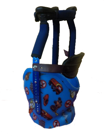 courbure de scoliose paralytique à l'origine, étendue au polyhandicap pour la facilité de mise en place avec l'ouverture des valves pelviennes, et sans les appuis mentonnier et occipitaux